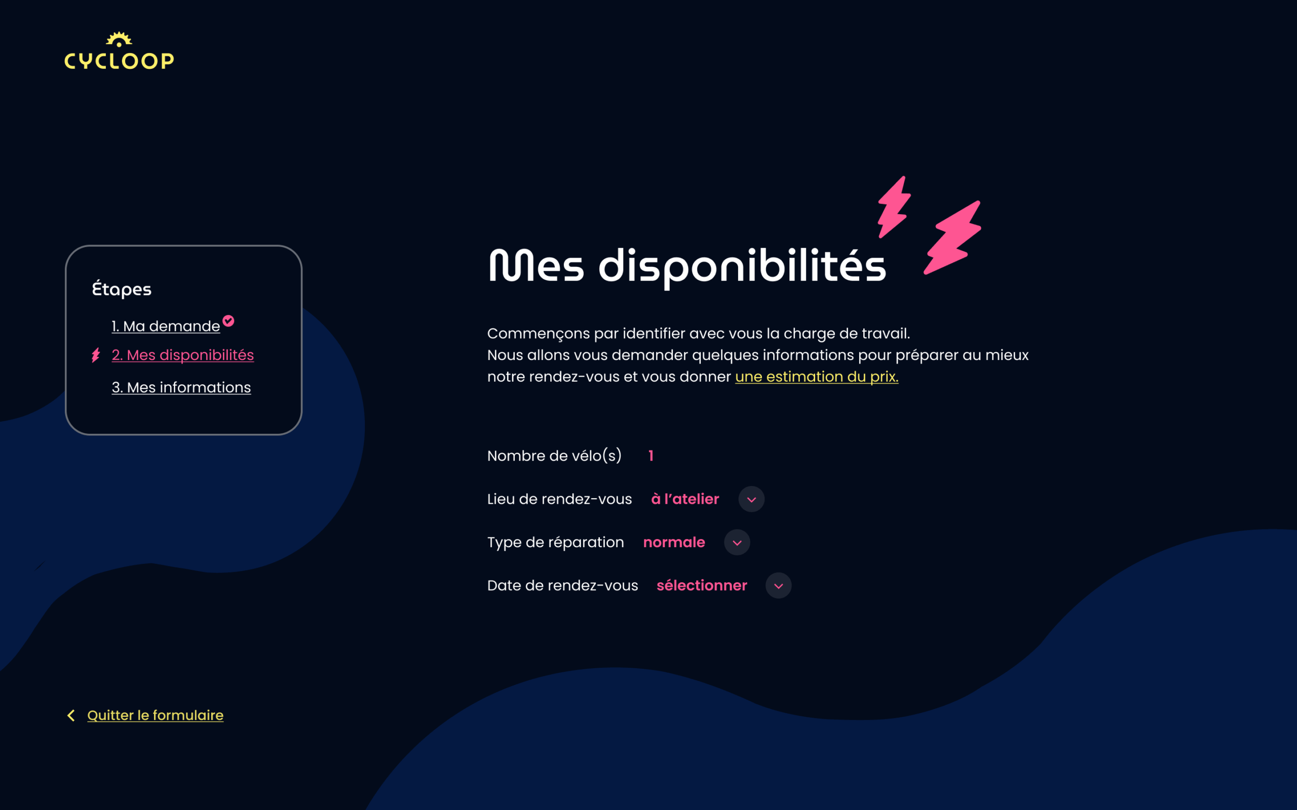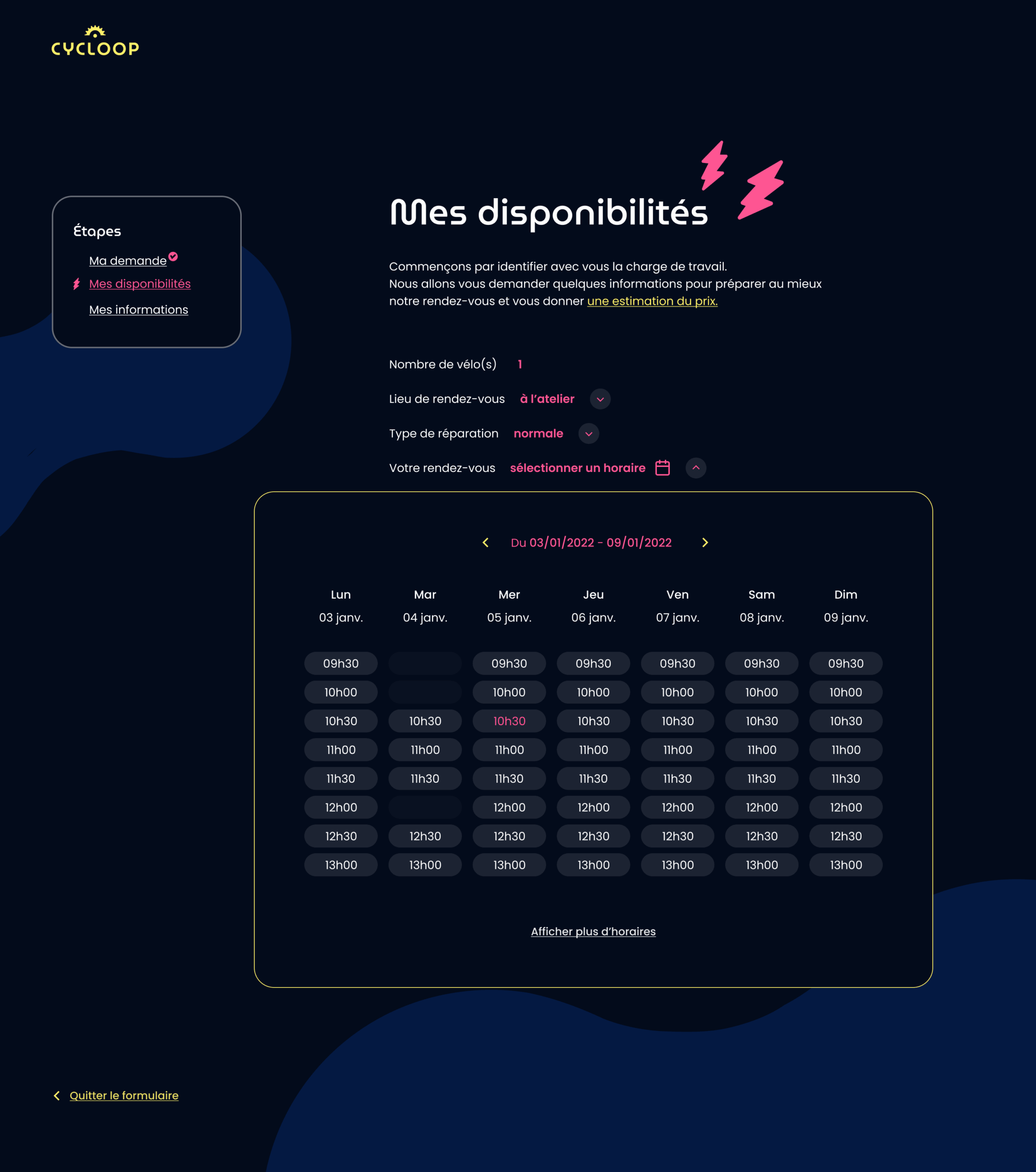 I was in charge of helping Ambroise to understand who are the customers of Cycloop and to clarify the offer. My work was about client & project management, analysis & strategy, user-flows, wireframes. During the production, I collaborated with a visual designer and a full-stack developer to create the brand and the website.